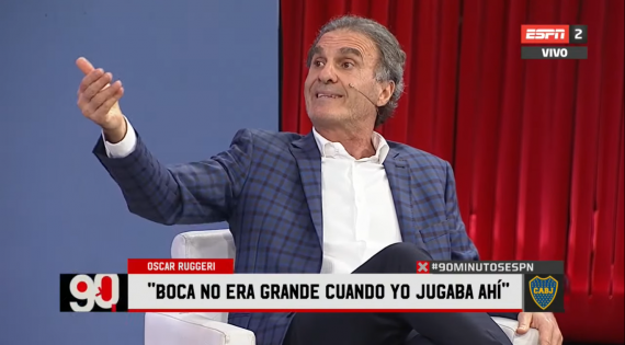 El exfutbolista y actual panelista de televisión, Oscar Ruggeri, tuvo una jornada picante este miércoles en el programa "90 minutos" que se emite por la señal de cable ESPN. Primero diciendo que Boca no era un club grande en 1980 y luego contando una situación tensa que vivió con la barra brava del club de La Ribera.
