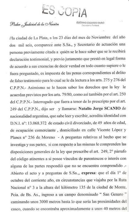 "Scanio es un testigo poco confiable", dijo a este periodista una fuente judicial de La Plata hace unos años.