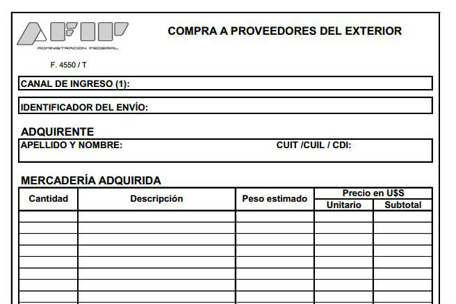 Una vez llenado el formulario 4550, debe realizar la declaración jurada del la compra, el acuse de recibo y por último el pago del V.E.P. (para una compra de 22 dólares se debe pagar unos 180 pesos por trámites de aduana.