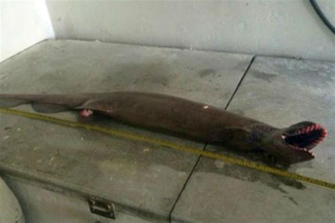 Un extraño tiburón anguila (Chlamydoselachus anguineus) apareció por sorpresa entre las redes de un pesquero australiano.