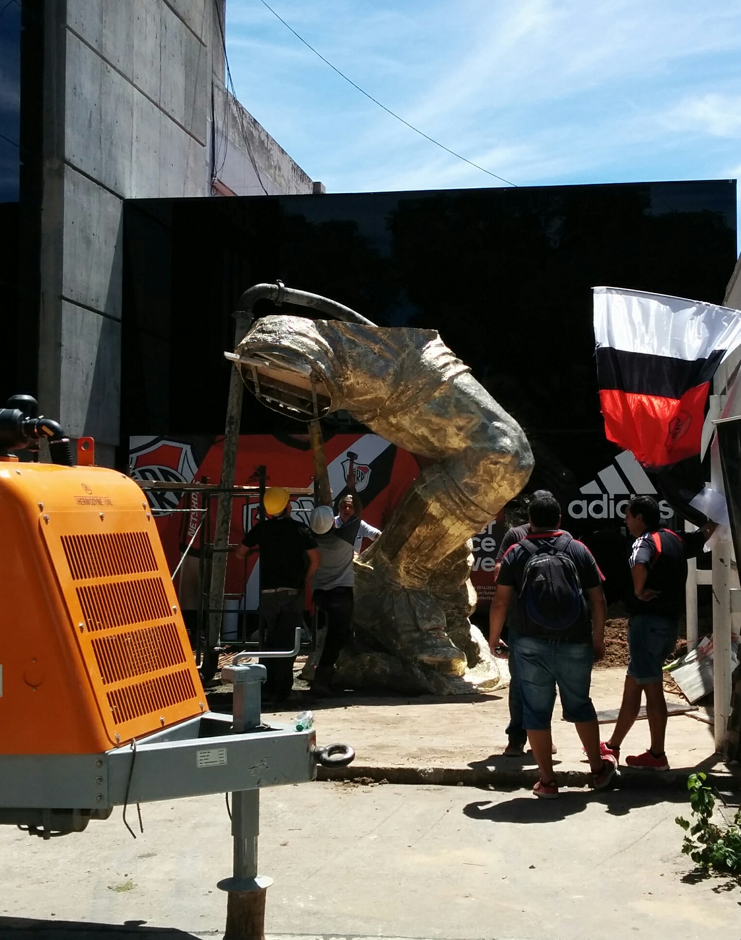 Casi termina en tragedia la instalación de una parte del monumento a Ángel Labruna en la puerta del museo de River. La estatua es una de las más grandes mundo, mide 6,7 metros y pesa más de dos toneladas.