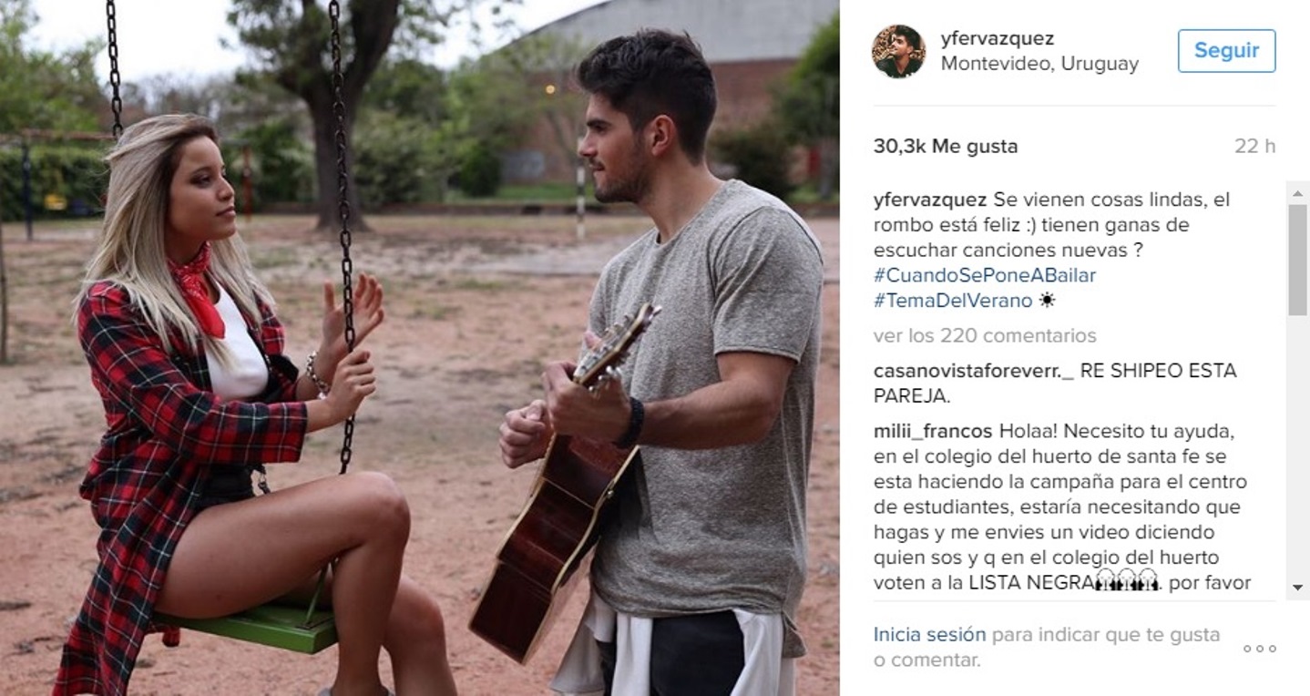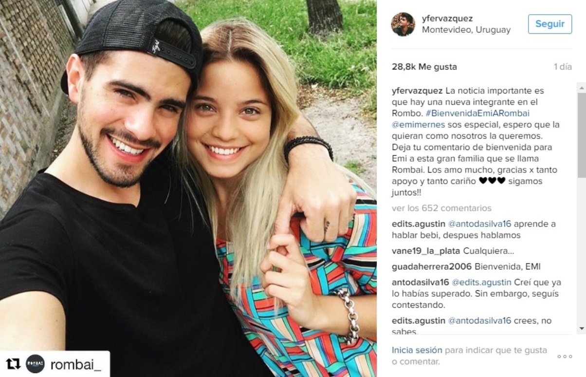 Fer Vázquez, líder y vocalista del grupo uruguayo de cumbia "cheta" Rombai, presentó a la nueva integrante de la banda, una entrerriana de 20 años llamada Emilia Mernes.