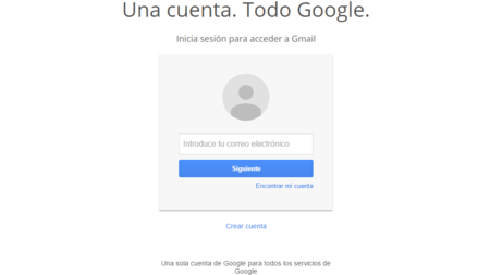 Para iniciar el proceso tienes que entrar en Gmail y cerrar la sesión de tu cuenta de Google. Si no quieres andar cerrando sesiones, entra a Gmail utilizando el modo de navegación privada del navegador. Una vez en la pantalla principal, dale al enlace de Crear cuenta que verás debajo del recuadro para iniciar sesión.