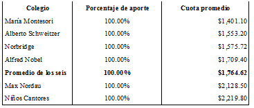 Según los últimos datos divulgados por la DEP actualizados al día de hoy, la cuota promedio (primaria más secundaria, dividido dos) de todos los colegios con proyectos especiales es de $1,764.62.- La del Colegio Norbridge es $1,575.72.-