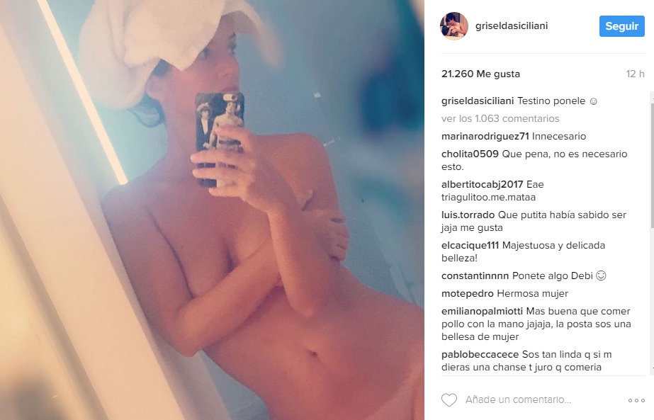Después de la ducha, la selfie súper hot de Griselda Siciliani