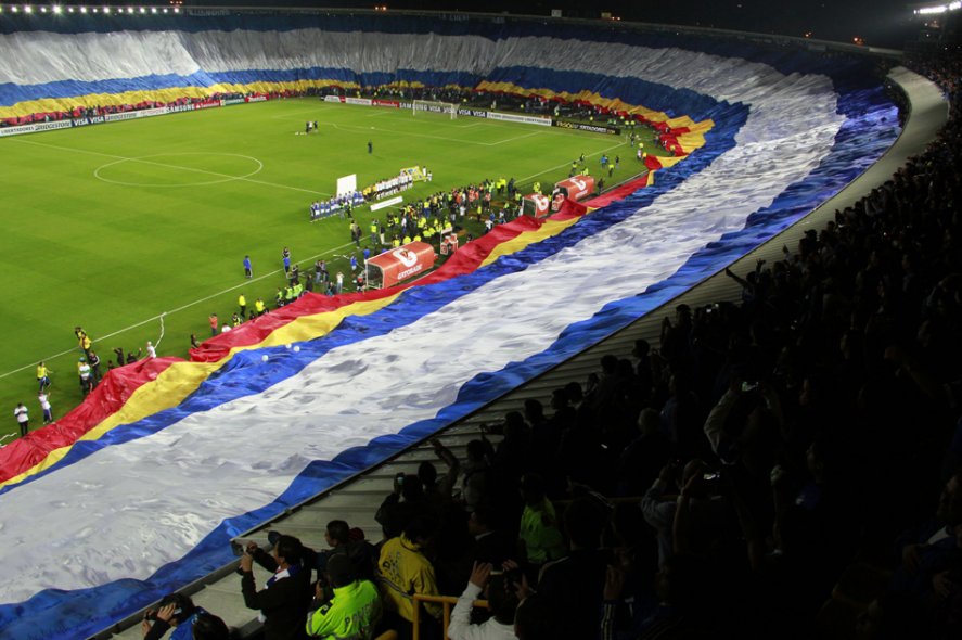 Si de dimensiones hablamos, la bandera más grande del mundo la tiene Millonarios de Colombia. Los hinchas del conjunto cafetero mostraron al mundo su impactante telón en 2013 con una longitud total de 750 metros de largo, cubriendo prácticamente todo el estadio.