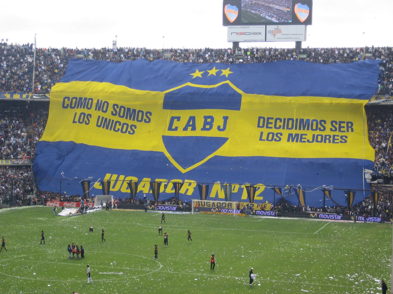 Además Los Borrachos del Tablón también suelen desplegar un telón de importantes dimensiones en el estadio Monumental.