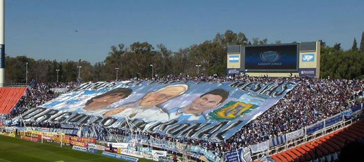 El Tomba tiene dos telones de gran magnitud que cubren casi en su totalidad la popular sur del Malvinas Argentinas. En el 2012, la Banda del Expreso presentó en sociedad una hermosa bandera gigante con dos trenes y la provincia de Mendoza con los colores bodegueros. En tanto, en la previa del Mundial Brasil 2014, los fieles tombinos sorprendieron con un telón mundialista que rezaba "Orgullo Nacional" y tenía las figuras de Maradona, el Papa Francisco (usando un collar con el escudo del Expreso) y Lio Messi.
