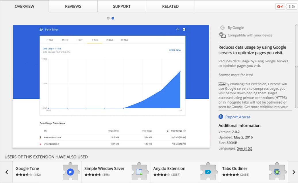 Si tus problemas en realidad son por la conexión a Internet, una forma de ahorrarlo es instalando una extensión conocida como Data Saver.