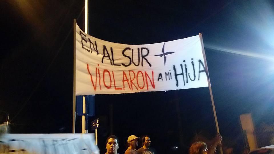 Luego, publicaron en Facebook las fotos de la protesta bajo el siguiente comentario: "Nos concentramos en las puertas del Boliche "Al Sur" para denunciar que hay impunidad garantizada para los violadores en esta provincia. Una chica fue violada dentro de "Al Sur" en noviembre y las grabaciones de las cámaras de seguridad fueron robadas esa misma noche.Seguir asistiendo a este boliche ES SER CÓMPLICE DE VIOLACIÓN. Una vez decimos: SI TOCAN A UNA NOS MOVEMOS TODXS".