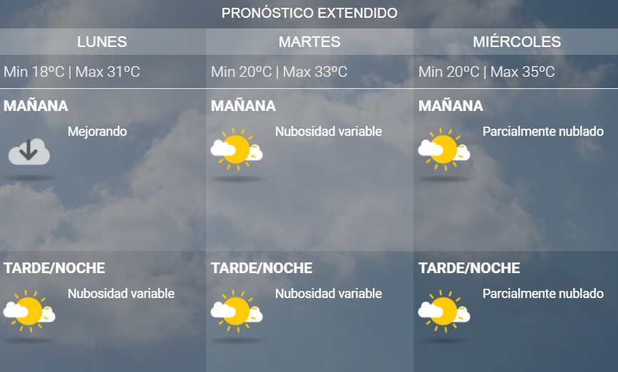 A partir del lunes comenzará a un lento pero constante ascenso de la temperatura, alcanzando una máxima de 35 grados el miércoles.