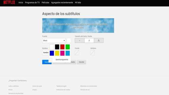 Allí el sistema le permite a cada usuario de Netflix modificar el tamaño, el color y el tipo de letra de los caracteres que se van a poder leer en la pantalla de reproducción. Así mismo, a los subtítulos, se les puede colocar un efecto de "sombra" o utilizar un color de fondo.