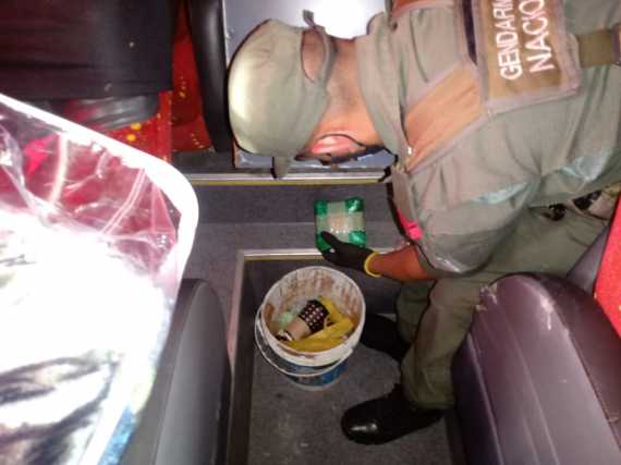 Los gendarmes inspeccionaron dos ómnibus procedentes de Jujuy con destino Mendoza, en el interior constataron el transporte de los paquetes.