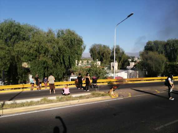 Pero, además, los vecinos que se manifiestan en este momento tomaron la determinación de cortar ambas vías de circulación del corredor a la altura de Tiburcio Benegas.