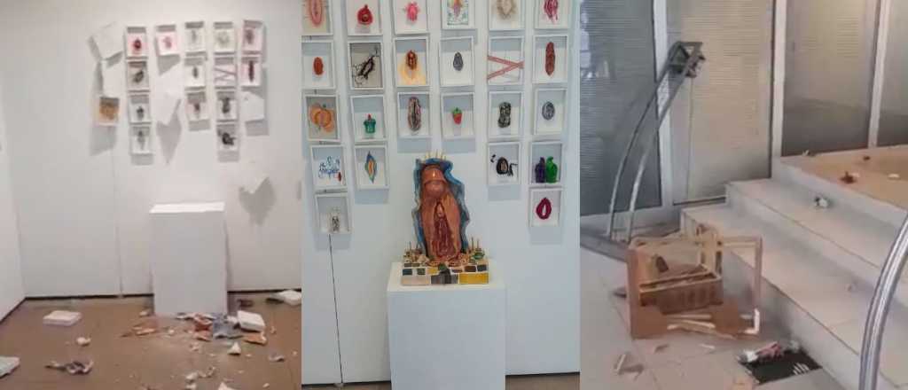 La polémica en torno a la muestra #8M Manifiestos Visuales en el rectorado de la UNCuyo continuará escalando. Este lunes, personas no identificadas destrozaron algunas obras en el espacio "Luis Quesada". Allí se exponían las imágenes cuestionadas por el Arzobispado y fieles católicos, en numerosas cartas, comunicados y manifestaciones en redes sociales. En el mismo lugar se filmó un video en el que aparece un grupo de personas rezando un Ave María, cuando ya estaban los restos de las obras en el suelo.
