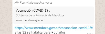 El Ministerio de Salud desmintió un mensaje que estaba circulando por WhatsApp, en donde anunciaba la inscripción para vacunarse a mayores de 35 años sin comorbilidades.