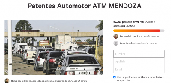 Cesar Boarelli se dirige al Gobierno de Mendoza y expone las razones de su solicitud, que necesita 75 mil firmas y está muy cerca de llegar al objetivo: "No es posible que nos suban 75 a 100% la patente automotor 2021", encabeza el pedido.