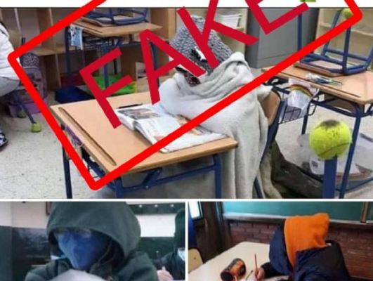 Circularon esta semana estas imágenes por las redes sociales exigiéndole al gobernador que suspenda las clases presenciales, asegurando que así estaban en las aulas, por el frío, los chicos en Tupungato. Eran fotos viejas de Andalucía, España.