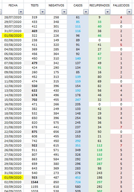 Para encontrar números similares hay que remontarse dos meses y medio, aproximadamente. Cifras de contagios por debajo de los 200 casos hay ir hacia el domingo 23 de agosto. Aquel día la provincia registró 153 pacientes positivos de Covid-19.