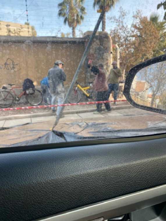 Este martes por la mañana, y sin ánimo de escrachar, unos obreros que trabajaban en la puerta del complejo Rincón de Arizu, en Godoy Cruz, compartían la bebida, tomando todos del pico de la botella.