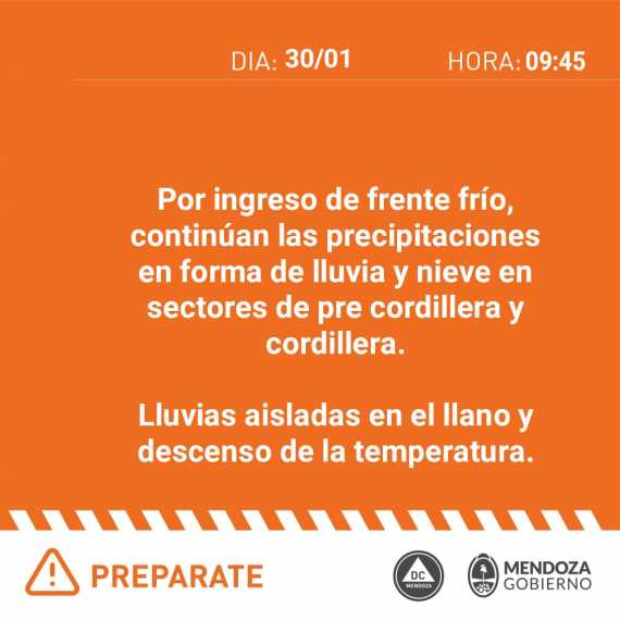El frente frío que ingresó a Mendoza en la noche de este viernes y la madrugada de este sábado, trajo no solamente lluvias en el llano sino que también nevadas en alta montaña.