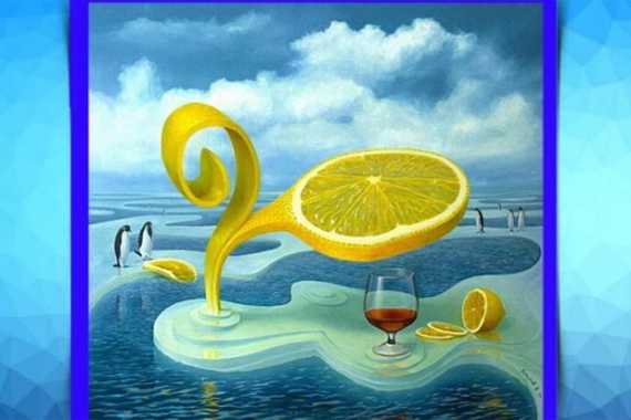 Lo único que tenés que hacer es mirar la imagen y decir qué fue lo primero que llamó tu atención. La ilustración está compuesta por varios elementos: una copa, rodajas de limón, hasta pingüinos, todo esto en un paisaje bastante singular. Lo primero que veas dirá qué tanta confianza tenés en vos mismo.