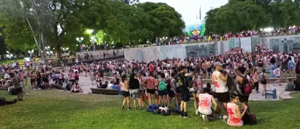 Al llegar a la Plaza principal de Mendoza, los estudiantes ingresaron a la fuente y provocaron daños en el nuevo equipamiento para brindar el espectáculo de aguas danzantes.