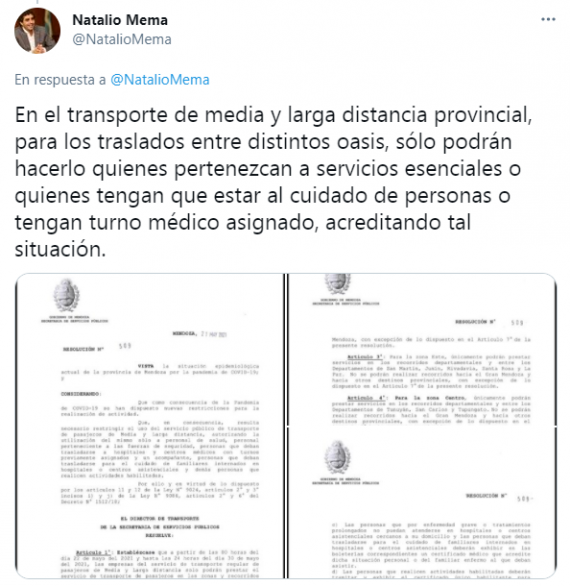 Tras la publicación del nuevo Decreto de Necesidad y Urgencia, el Secretario de Servicios Públicos Natalio Mema detalló el funcionamiento del transporte de media y larga distancia en las distintas zonas de Mendoza.