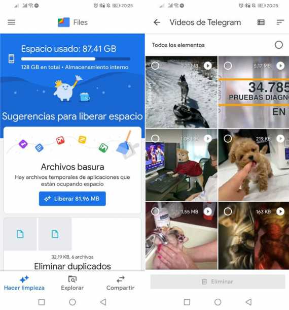 En el terreno de la limpieza, con Google Files puedes eliminar fácilmente memes y vídeos de apps como Wombo fácilmente, así como archivos descargados o revisar archivos de gran tamaño que tienes en el móvil, así como aplicaciones que no usas mucho y que te podría interesar desinstalar.