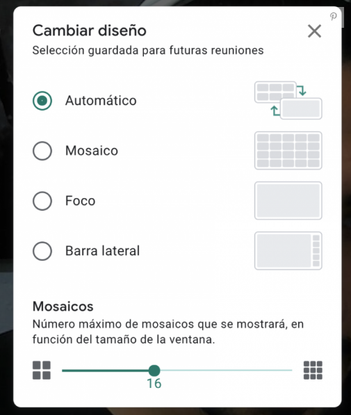 También podés elegir la cantidad de mosaicos a mostrar para que entren todos los participantes en la misma pantalla.