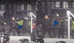 Los tres efectivos se agarraron a golpes y la escena fue registrada por los transeúntes. Denuncian violencia de género.