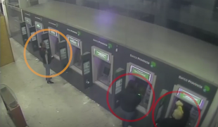 Un hombre canoso y una mujer de pelo castaño se reunían en los cajeros con Rigau y fueron filmados sacando plata con 33 tarjetas distintas.